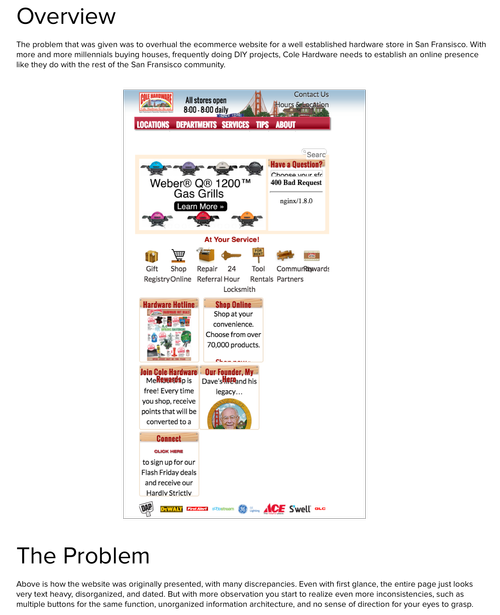 With more and more millennials being majority of today's consumers, Cole Hardware, a well established hardware supply company in SF has asked for our assistance to redesign their outdated e-commerce website.